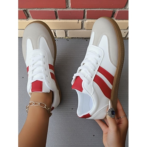 Damen-Retro-Schnürsneaker mit braunen und grünen Akzenten – bequeme Freizeit-Sportschuhe zum Spazierengehen, Reisen und für den Alltag