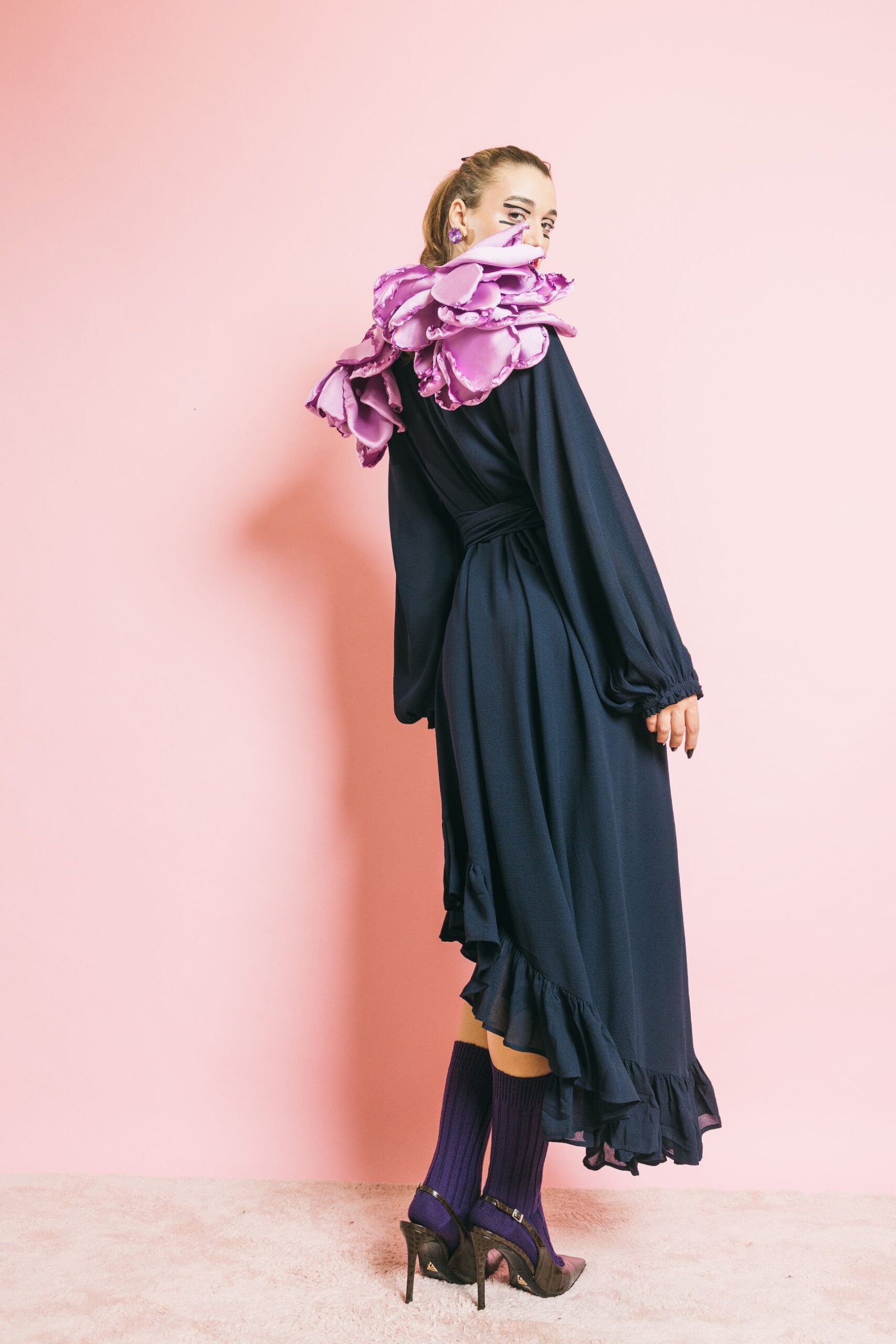 Slipper "Blumenranke" navy