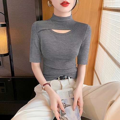 Per donna Top corto avvolgente Semplice Elegante Manica Corta Girocollo Top Regolari Nero Bianco Vino Blu Marrone Estate