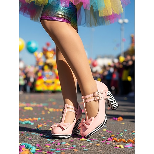 Per donna Quotidiano Carnevale Feste Fiocco Fibbia Tacco grosso Punta Tonda Elegante Vintage Finta Pelle Fibbia Nero Bianco Giallo