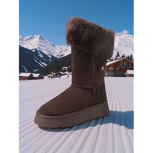 stivali invernali da donna con lacci foderati in pelliccia sintetica - caldi stivali da neve in pelle scamosciata con suola antiscivolo per il freddo e le attività all'aperto