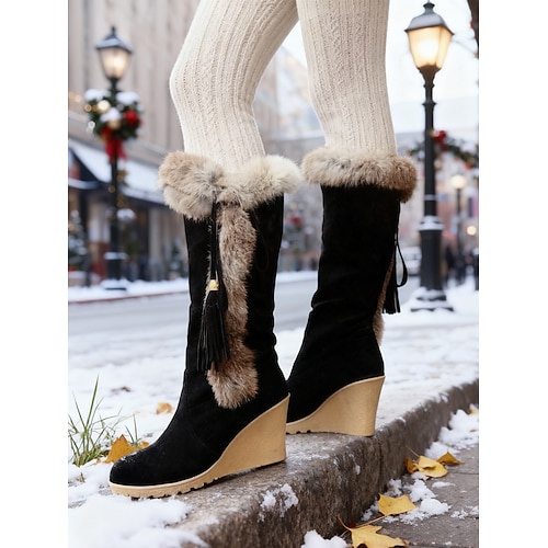 stivali da neve da donna con zeppa in pelle scamosciata arancione e rifiniture in pelliccia sintetica: stivali da neve eleganti e comodi con dettagli in nappa, caldi e comodi da indossare tutti i