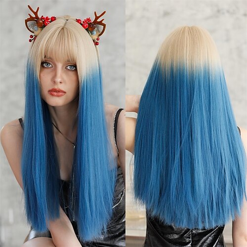 Parrucche nere per donna Parrucca lunga nera parrucca Cosplay parrucca sintetica parrucca Cosplay lunga azzurro marrone chiaro blu lago biondo rosa capelli sintetici 34 pollici parrucce per Halloween