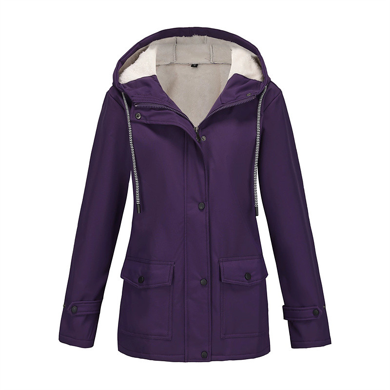 Women's Hoodie Jacket Waterproof Rain Jackets Rain Coats Warm Comfortable Zipper Pocket Outdoor Casual Plain Going out Casual Daily Zipper Regular Hooded Regular Fit Long Sleeve Outerwear Navy Black