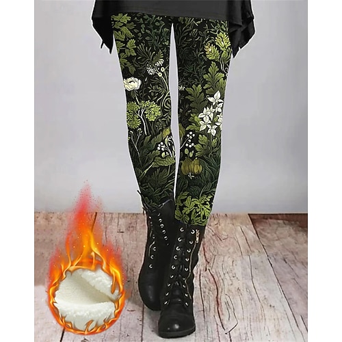 Per donna Leggings Leggings comodi Vintage Moda Streetwear Lunghezza intera Vita AltaPantsNatale Floreale Grafico Stampa Pile Calore Termico Comodo Elasticizzato All'aperto Casual Quotidiano Verde