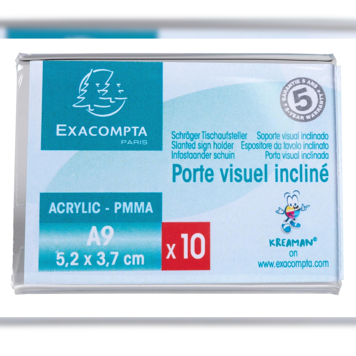 Exacompta 89058QD 20x Exacryl, Set mit 10 Tischaufstellern 52x37 mm/A9 Querformat - Kristall