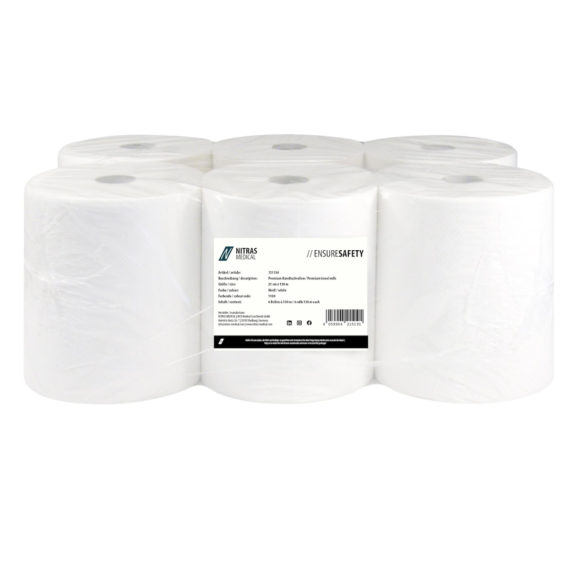 MCD Medical Care Dental GmbH NITRAS Premium-Handtuchrollen - weiß - 21cm x 130 m - 2-lagig - 6 Rollen