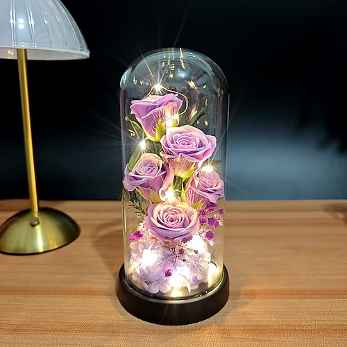 Rosa di vetro, fiore di cristallo eterno per sempre, rose luminose in una cupola di vetro, regali di San Valentino per donne, mamme, nonne, mogli e sorelle