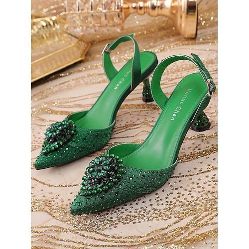 scarpe eleganti con tacco a spillo e strass verdi da donna, scarpe eleganti a punta per la festa di San Patrizio