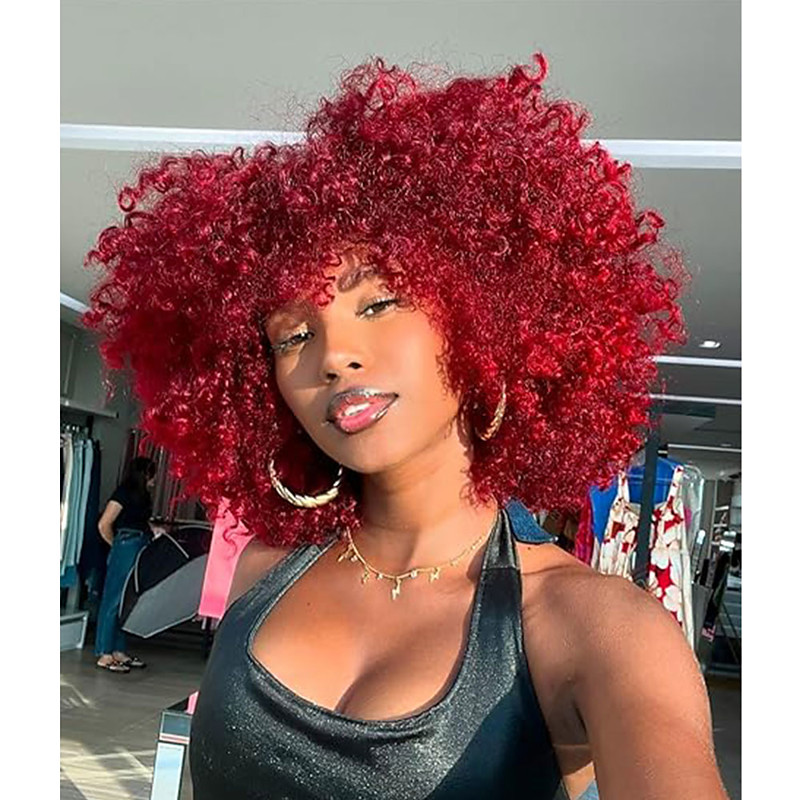Short Afro Curly Wigs With Bangs For Women Kinky Curly Hair Wig 2 Tone Big Bouncy Fluffy Curly Wig 12Inch