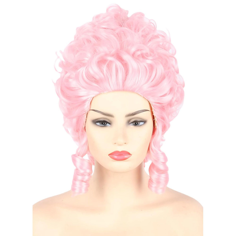 Pink Powdered Beehive Drag Queen Wig for Women Girl Bouffant Baroque Renaissance Wigs Short Curly