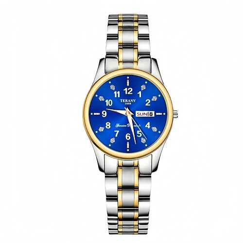 Diese Damen-Quarzuhr ist modisch, lässig und elegant zugleich und verfügt über eine digitale Strass-Skala sowie ein Zifferblatt mit Leuchtmasse und Doppelkalender – die perfekte Geschenkidee für