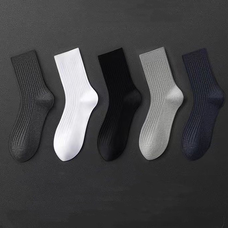 Men's 5 Pairs Multi Packs Socks Running Socks Casual Socks Black White Color Plain Vacation Sports Outdoor Daily Basic Medium Spring Fall Fashion Casual