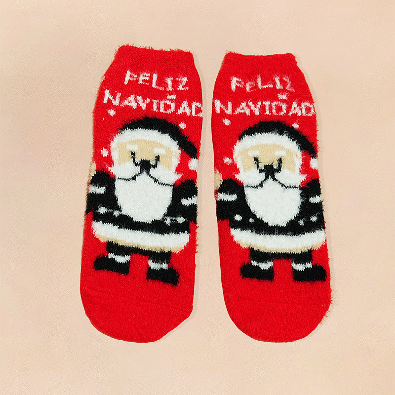 Christmas Women's Slipper Socks, Cartoon Coral Fleece Plush Crew Socks, Mid-Calf Fluffy Floor Socks, Christmas Holiday Cross-Border Edition