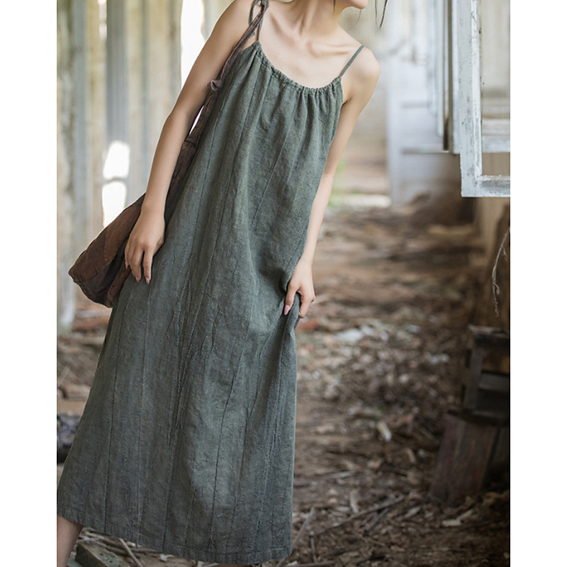Women's Long Dress Maxi Dress Cotton Blend Cotton Linen Dresses Casual Dress Summer Dress Fashion Modern Daily Weekend Regular Fit Plain Sleeveless Straps Blue Black Green Khaki Summer