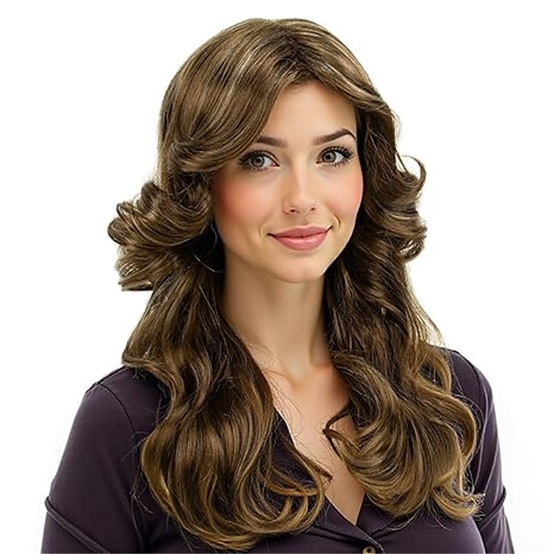 70s Brown Highlight Disco Wig Farrah Fawcett Wigs for Women Lady Natural Synthetic Full Wigs Vintage Cosplay Costume Hair Wig
