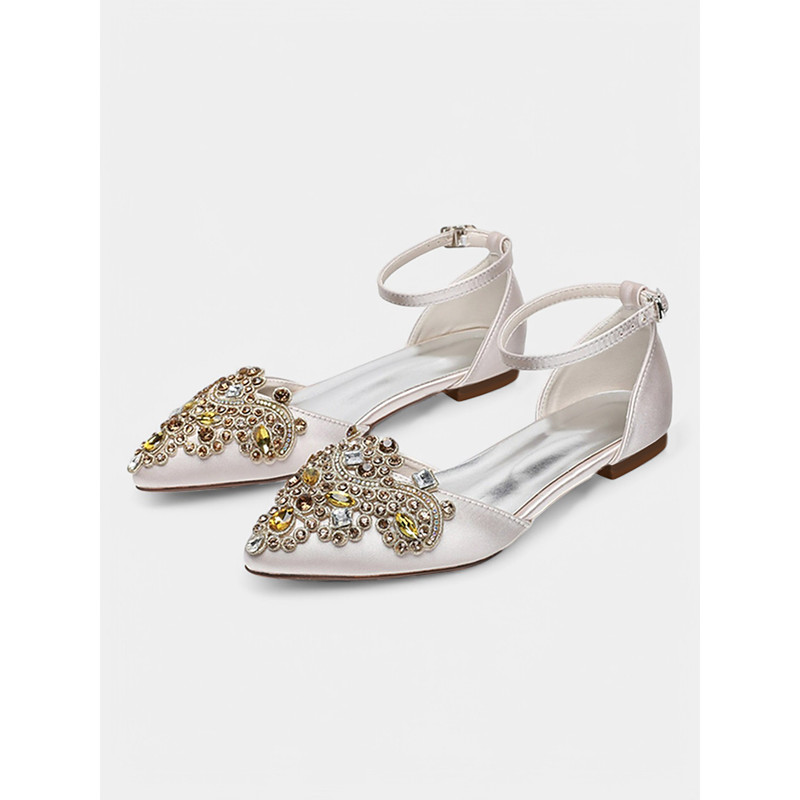 Women's Wedding Shoes Flats Ladies Shoes Valentines Gifts White Shoes Wedding Party Daily Wedding Flats Bridal Shoes Bridesmaid Shoes Rhinestone Flat Heel Pointed Toe Elegant Fashion Luxurious Satin