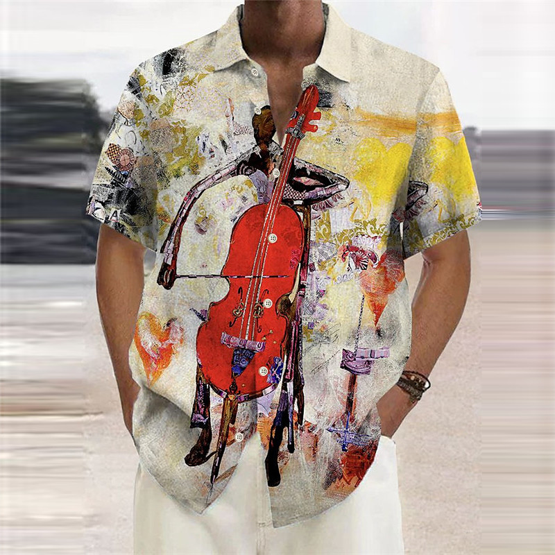 Men's Boardmasters Musical Instrument Jazz Shirt Summer Shirt Button Up Shirt Short Sleeve Vintage Retro Outdoor Vacation Dailywear Summer Spring Turndown 3D Print Collared Shirts Front One Pocket