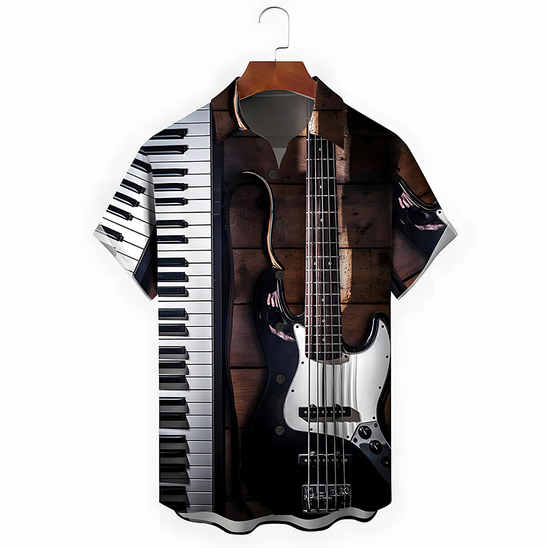 Men's Boardmasters Guitar Piano Shirt Summer Shirt Button Up Shirt Short Sleeve Vintage Retro Outdoor Vacation Dailywear Summer Spring Turndown 3D Print Collared Shirts Front One Pocket Black Brown