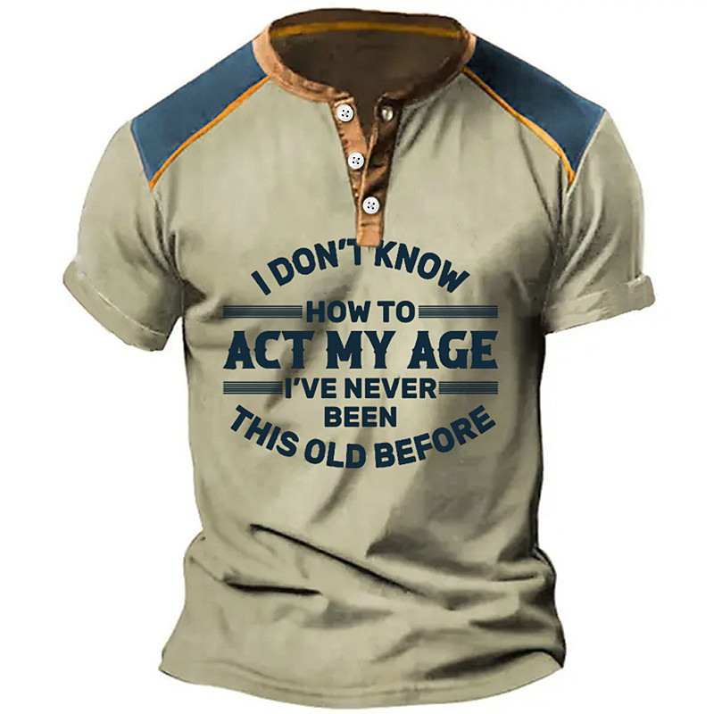 Men's Graphic Letter Henley Shirt Short Sleeve 3D Print Fashion Designer Comfortable Outdoor Daily Summer Blue Green Khaki Army Green Gray Henley Henley T-Shirt