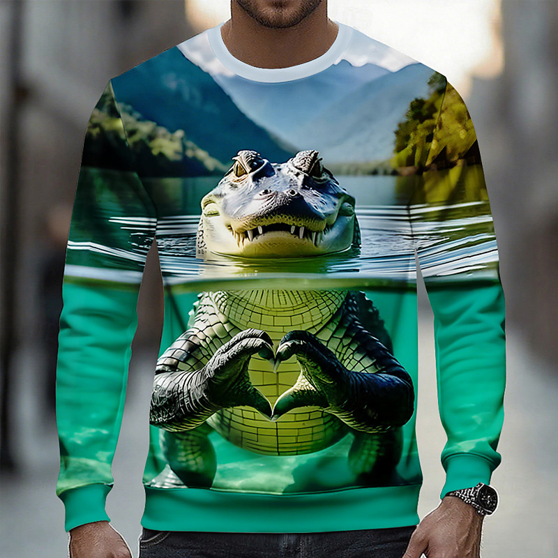 Men's Crocodile 3D Funny Sweatshirt Casual Long Sleeve Crew Neck Vacation Party Gift Light Green Green Crewneck 3D All Seasons Designer