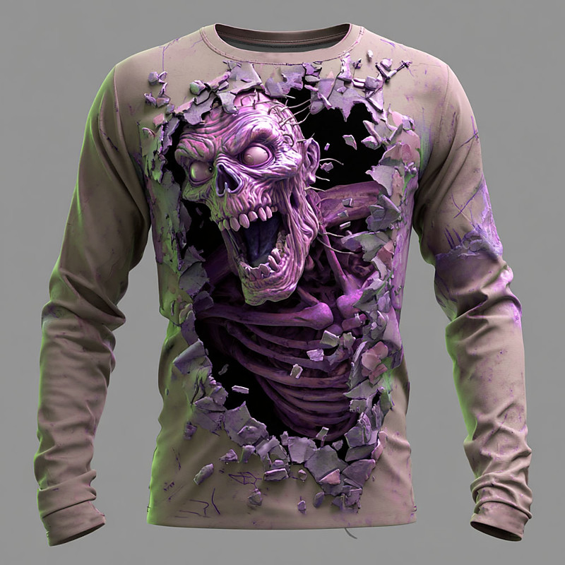 Halloween Men's 3D Zombies Sweatshirt Punk Party Crew Neck Vacation Light Green Purple Crewneck 3D All Seasons Designer