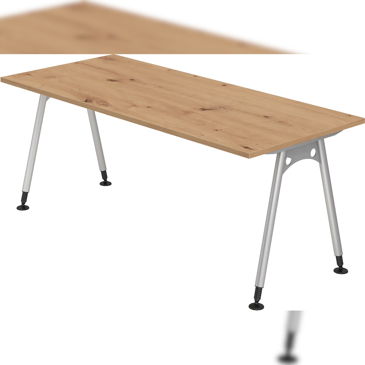 bümö manuell höhenverstellbarer Schreibtisch 180x80 cm in Asteiche - PC Tisch höhenverstellbar & groß, höhenverstellbarer Tisch Büro, großer