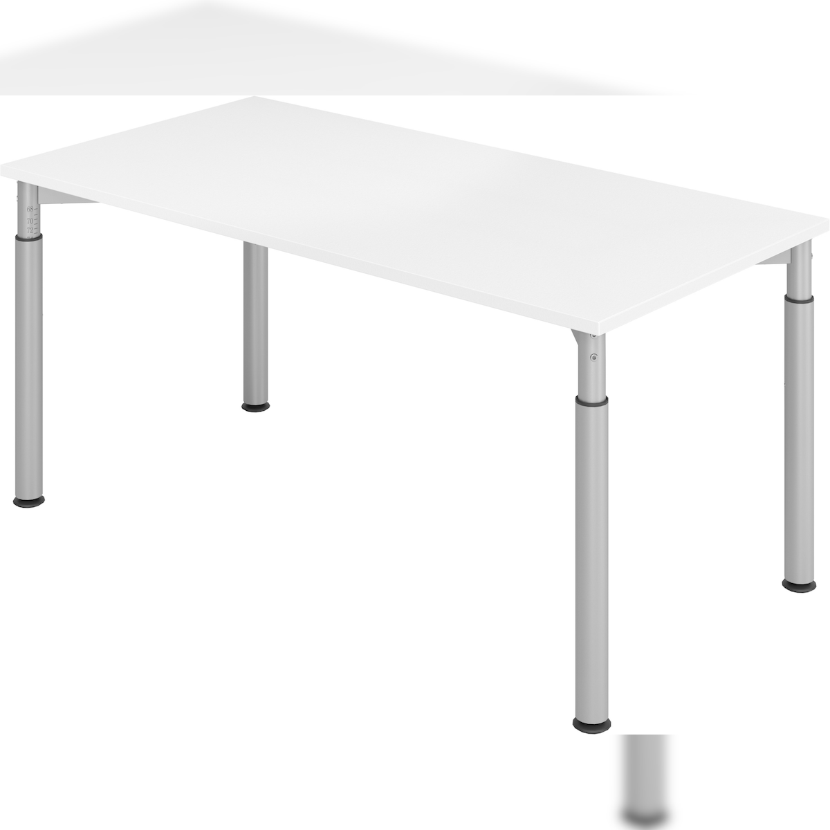 bümö höhenverstellbarer Schreibtisch 160x80 cm in weiß, Gestell silber - PC Tisch höhenverstellbar & groß, höhenverstellbarer Tisch Büro, großer