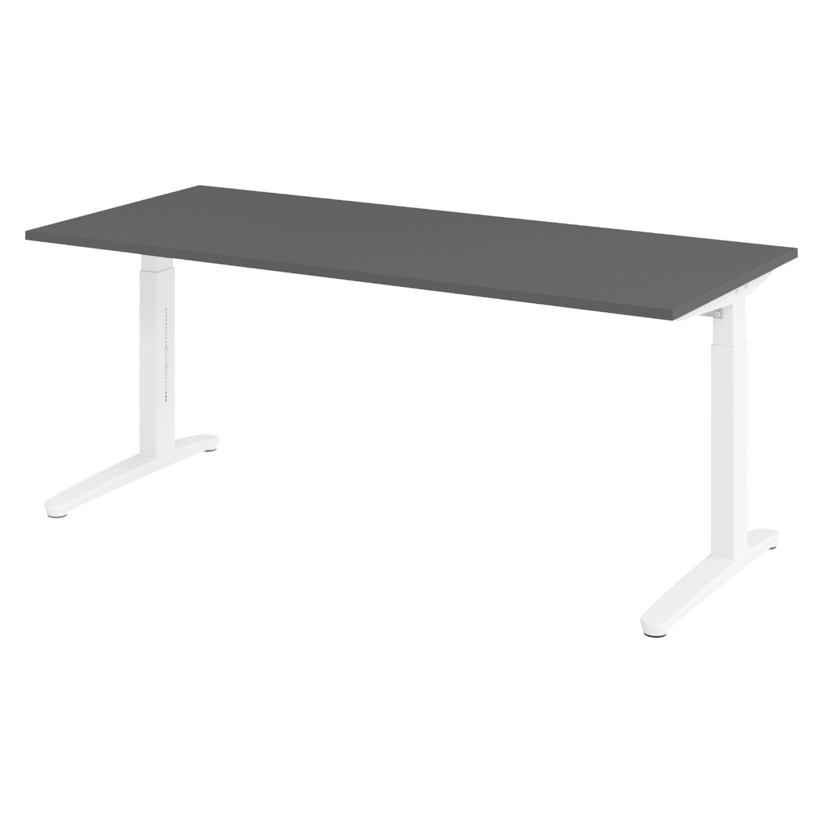bümö manuell höhenverstellbarer Schreibtisch 180x80 in graphit Gestell in Weiß - PC Tisch höhenverstellbar & groß, höhenverstellbarer Tisch Büro,