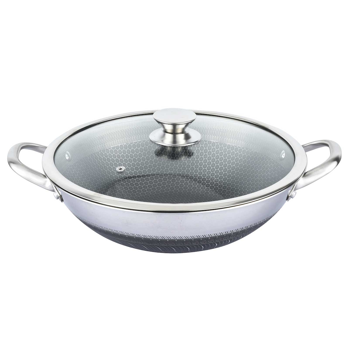Wok Edelstahl mehrschichtig, abgeflachter Boden, Antihaft