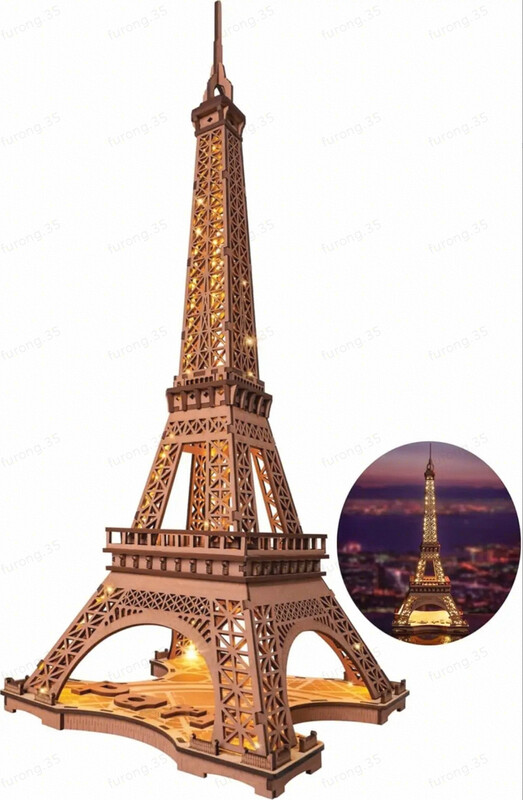 Robotime Rolife Night of the Eiffel Tower Wooden 3D Puzzle Building Toys 22 x 21.3 x 53 cm 1PC