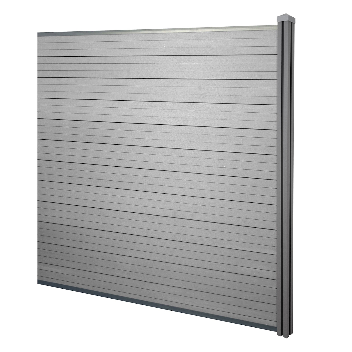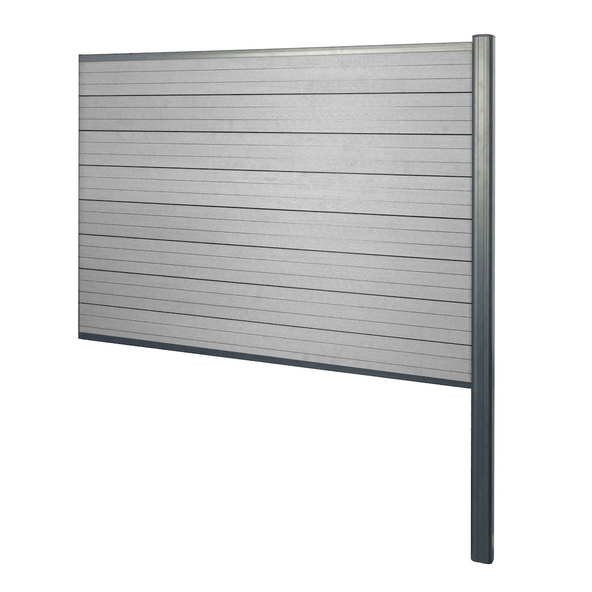 Mendler WPC-Sichtschutz Sarthe, Zaun Windschutz, Alu-Pfosten zum Einbetonieren ~ Erweiterungselement, 185cm grau