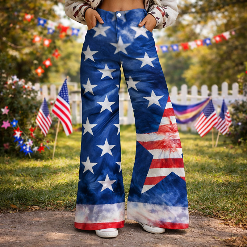 Retro Vintage 1970s Pants Wide Legged Pants Hippie Disco High Waist Fancy Dress Women's Masquerade 4th of July Party American 250 Semiquincentennial Adults' Pants
