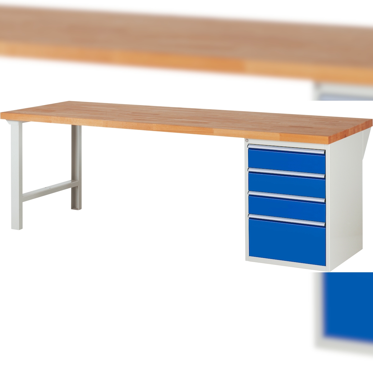 PROREGAL Werkbank Serie 7000 - Modell 7510 | HxBxT 89x250x90cm | 4x Schublade | Schubladenmaße 3x150 + 1x270mm | Lichtgrau | Arbeitstisch Werktisch