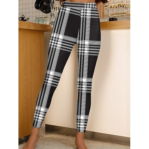 Per donna Leggings Vacanza Vintage Moda Lunghezza alla caviglia Vita Alta Grafico Geometrico A quadri Stampa Morbido Traspirante Elasticizzato Quotidiano All'aperto Verde translucido Nero e bianco