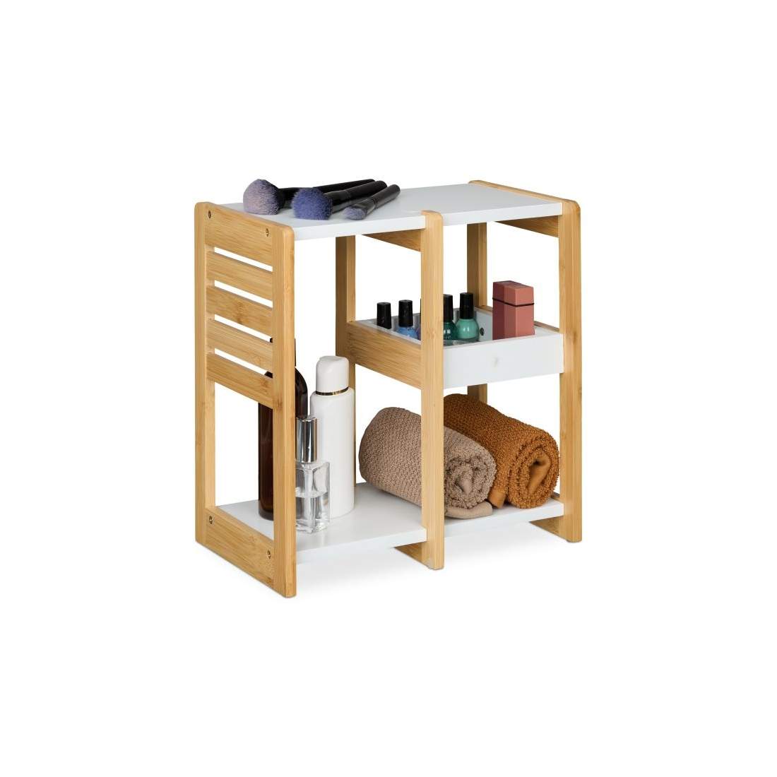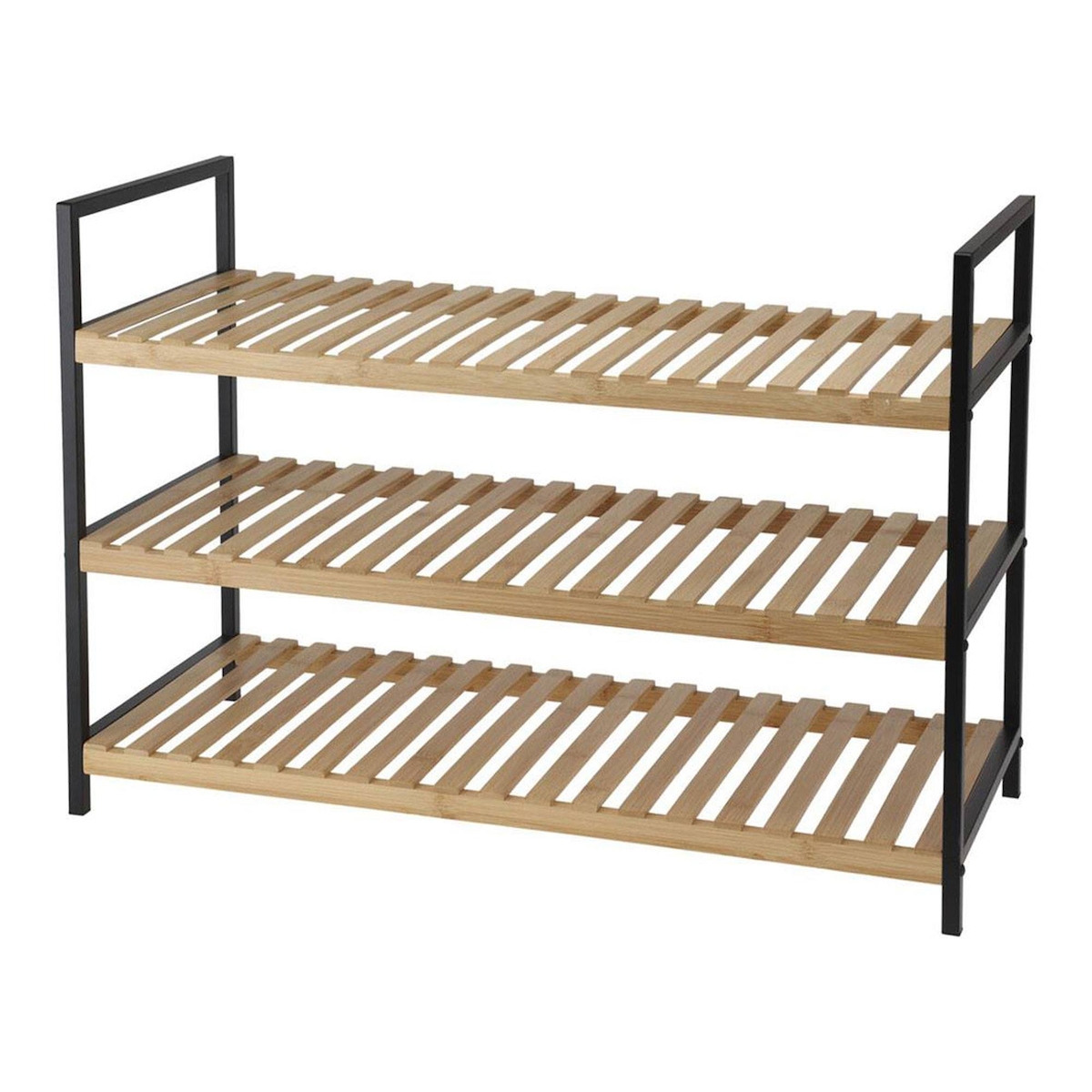 WellHome - Bambus-Schuhregal mit 3 Regalen aus Metall und Bambus 70x30x48,5cm
