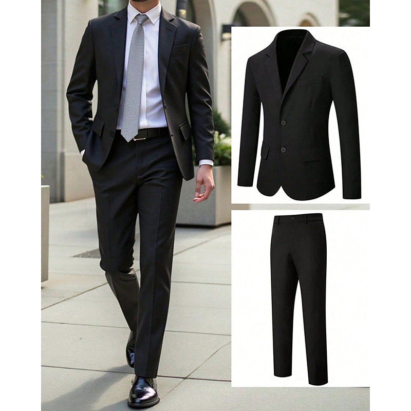 Men's Blazer Set Business Cocktail Party Wedding Party 2 Piece Fashion Casual Spring Fall Polyester Plain Pocket Buttons Comfortable Single Breasted Blazer Black