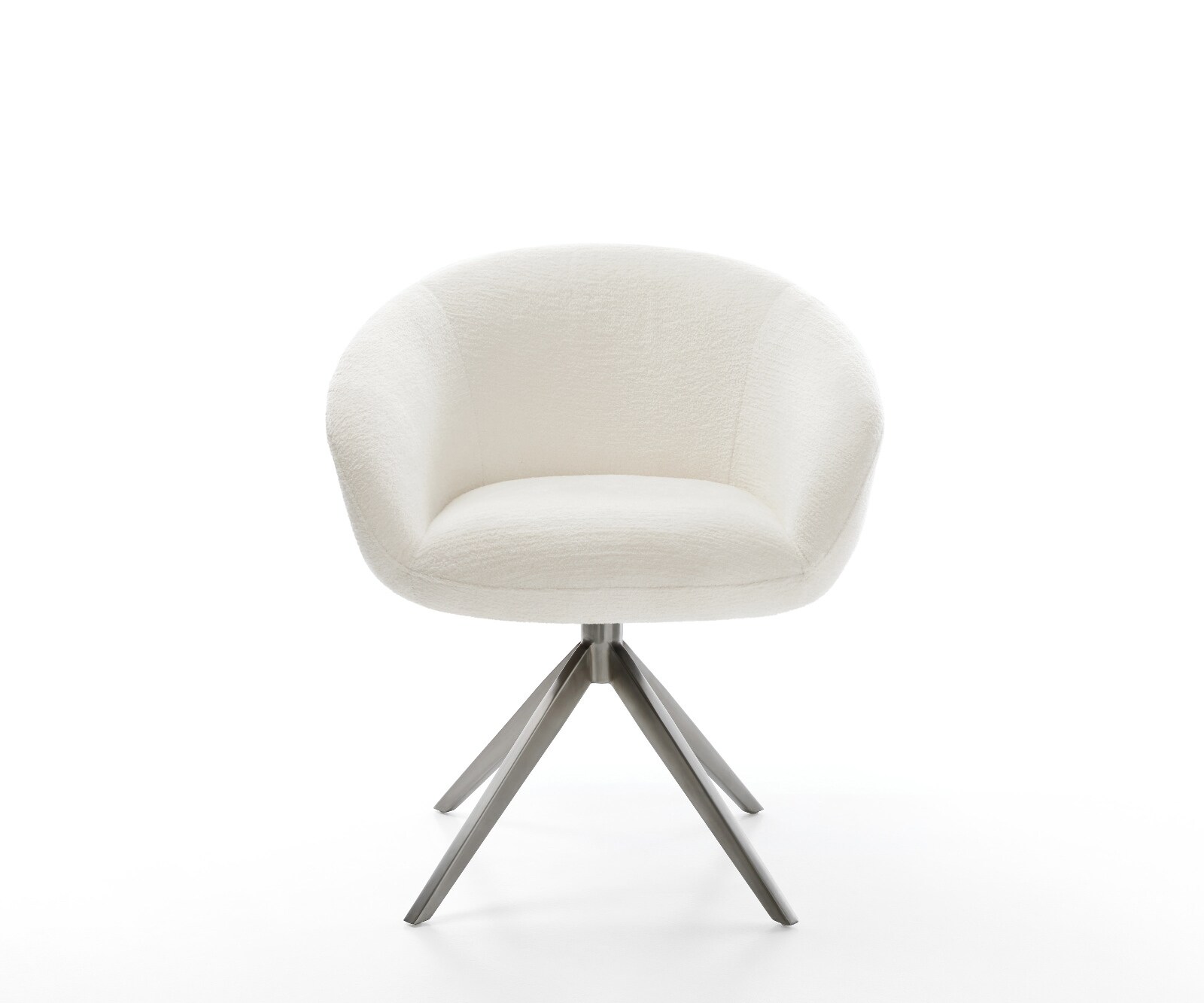 DELIFE Draaistoel Abelia-Flex met armleuning bouclé zacht beige kruisframe breed afwerking met titanium 360° draaibaar rocker-functie