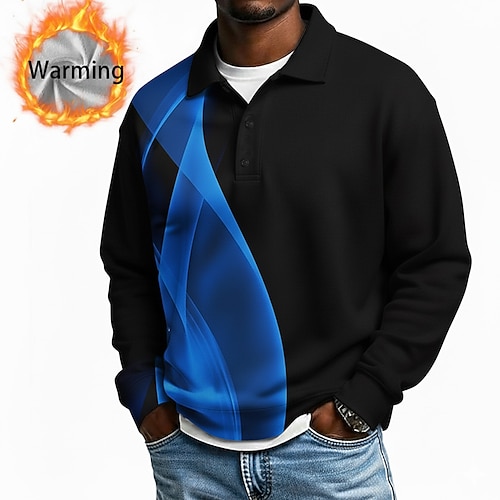 Per uomo Geometrico Linea Polo Camicie termiche Manica Lunga Magliette polo Bavero Casual Athleisure Ferie Abbigliamento quotidiano Stampa 3D Primavera Autunno Inverno Blu Bianco Rosso