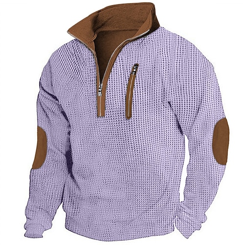 Per uomo Maglietta Maglietta a Maglia Waffle Camicia a Maniche Lunghe Camicie da uomo con toppe sui gomiti Manica Lunga Collo Alto Zip a un quarto Primavera Autunno Autunno Inverno Blocco di