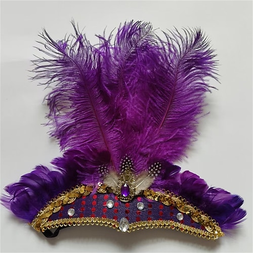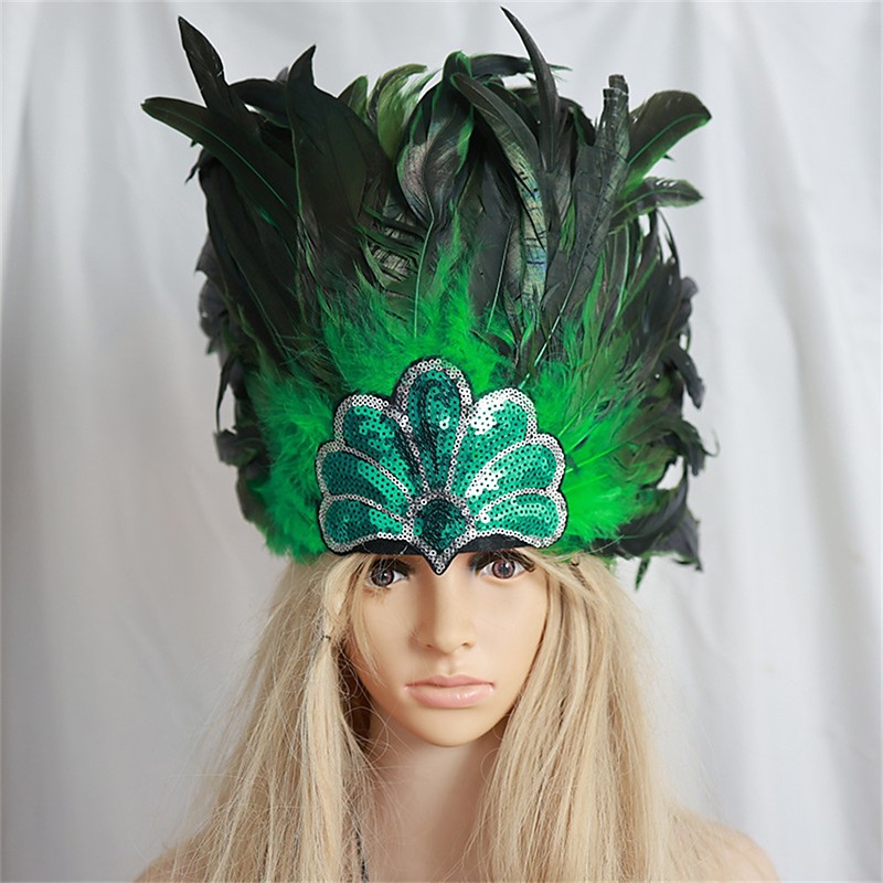 Carnival 2026Rio Carnival Samba Accessories Carnival Feather Headdress for Women - Sequin Peacock Blue Green Costume Headpiece - Brazil Festival Performance Costume