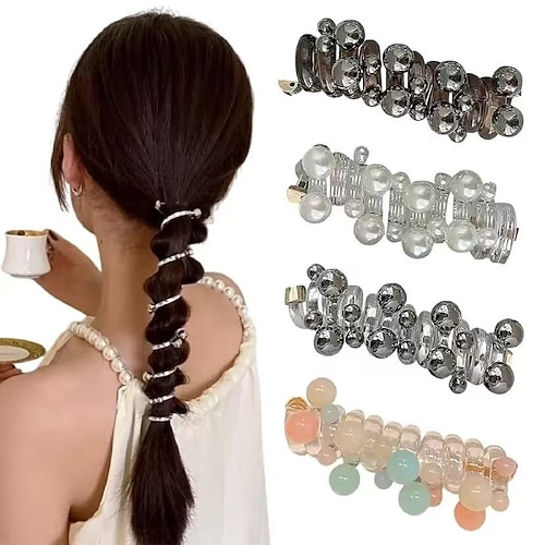 4 elastici per capelli a spirale con perle finte e cinturino per telefono, strumento per intrecciare i capelli in stile giapponese per creare code di cavallo alte, elastico per capelli a spirale