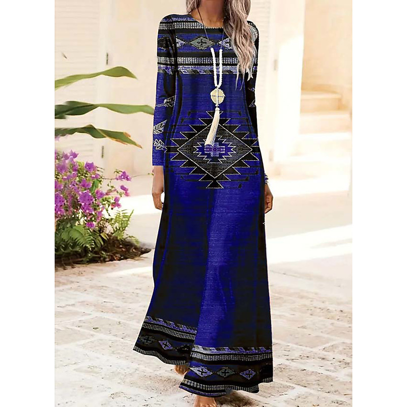 Women's Maxi Dress Sheath Dress T Shirt Dress Tee Dress Vacation Casual Boho Holiday Date Regular Fit Graphic Geometric Tribal Long Sleeve Crew Neck Blue Dark Brown Black Red Spring Fall
