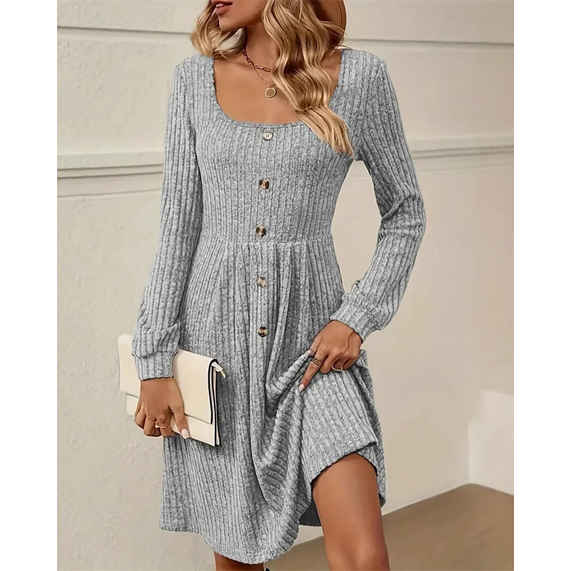 Women's Midi Dress Casual Dress Fashion Modern Daily Date Weekend Regular Fit Plain Long Sleeve Square Neck Black Khaki Gray Spring Fall