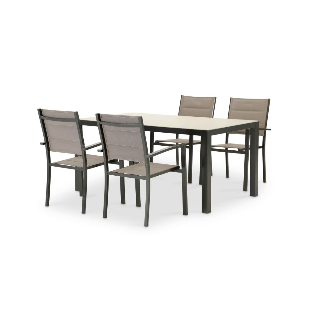 Set tavolo fisso 160×90 e 4 sedie da giardino marrone