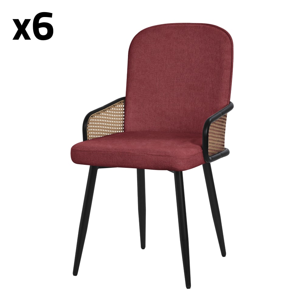 Set di 6 sedie da pranzo rosso ergonomiche braccioli in effetto rattan