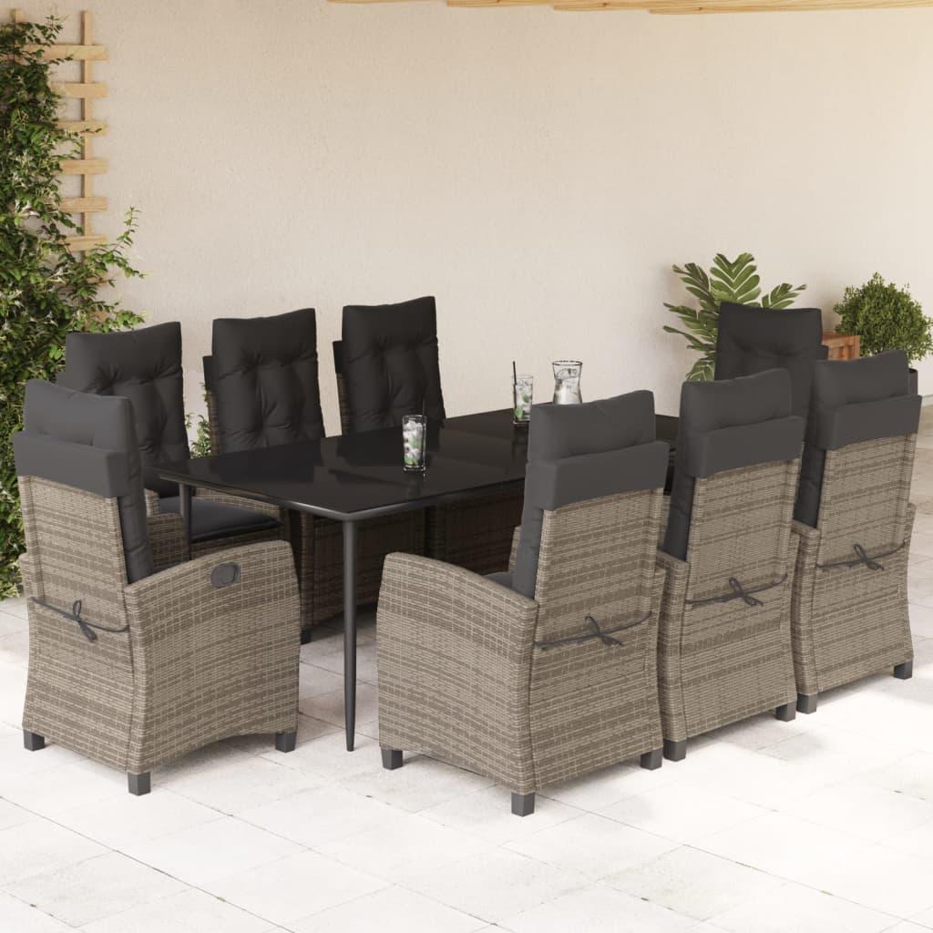 Spisebordssæt til haven 9 dele med hynder polyrattan grå