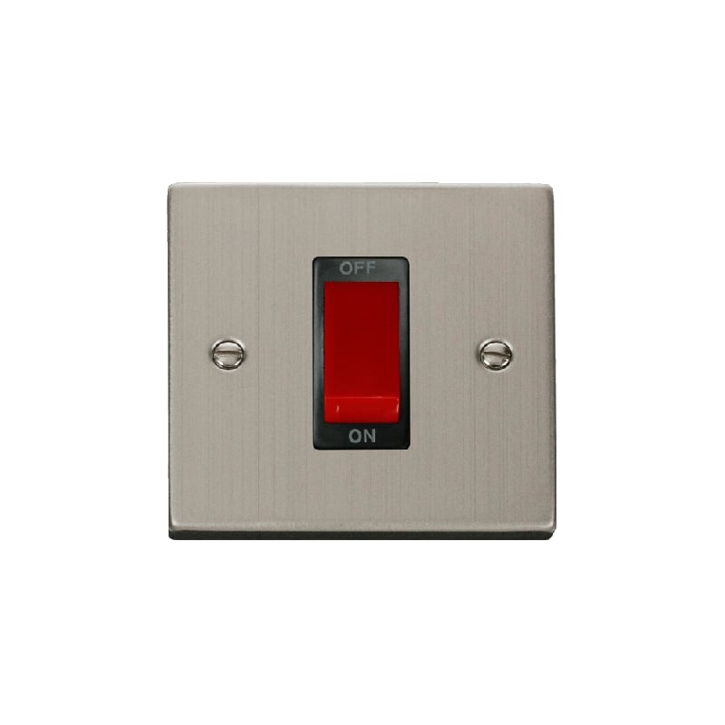 Click Deco 1 Gang 45A Double Pole Switch Stainless Steel Insert Black