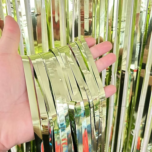 Confezione da 3 tende con frange in lamina, decorazioni per feste con festoni di lamé da 12 m (3,3 x 6,6 piedi), fondale con frange per compleanni, baby shower, rivelazione del sesso, laurea