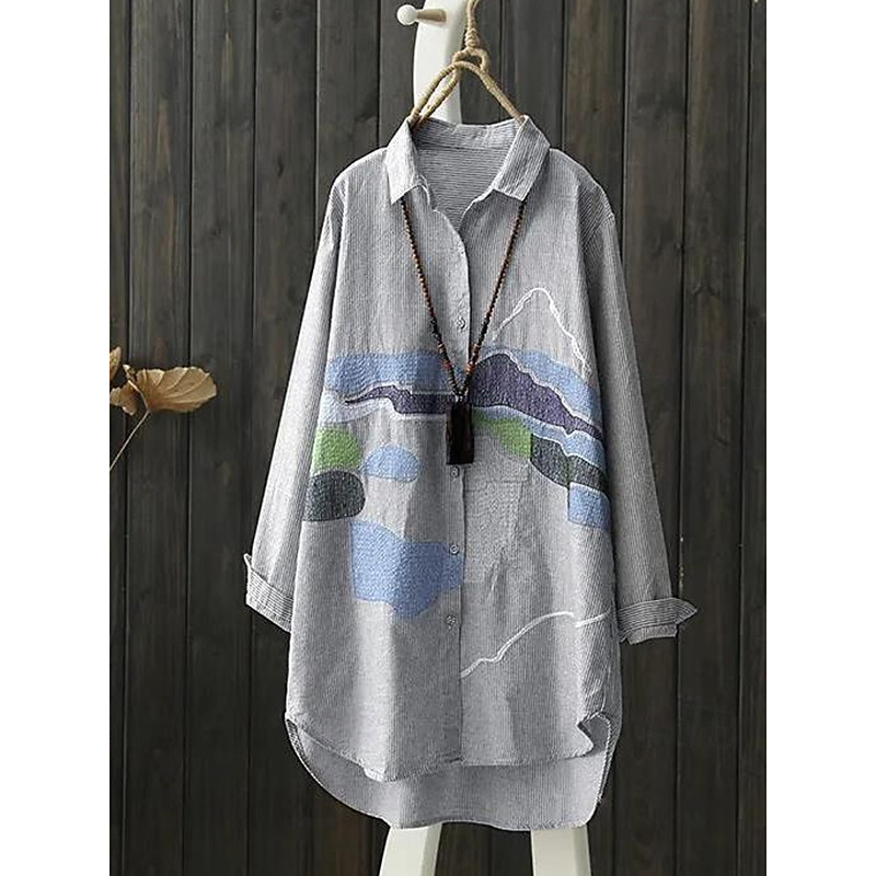 Women's Shirt Linen-Inspired Shirts Button Up Long Sleeve Shirt Collar Black Blue Spring Fall